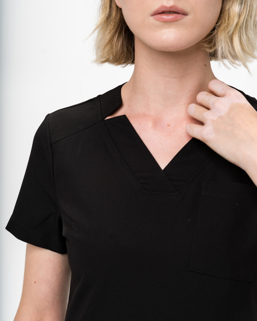 Departe de a fi simpla, bluza Vivienne vine cu un guler V reimaginat, un buzunar la piept precum si doua buzunare laterale. Materialul Super Soft te va mangaia si iti va oferi tot confortul de care vei avea nevoie.